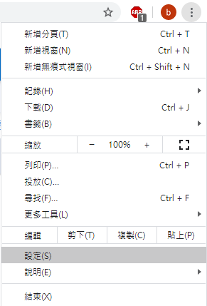 這時開啟CHROME,右上角的自訂及管理(三個點 ) 選擇設定