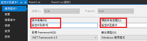 1. 先到VS的方案總管,對著你專案名稱右鍵選擇重新命名,輸入新的名稱。我的是"設定IP及網卡"